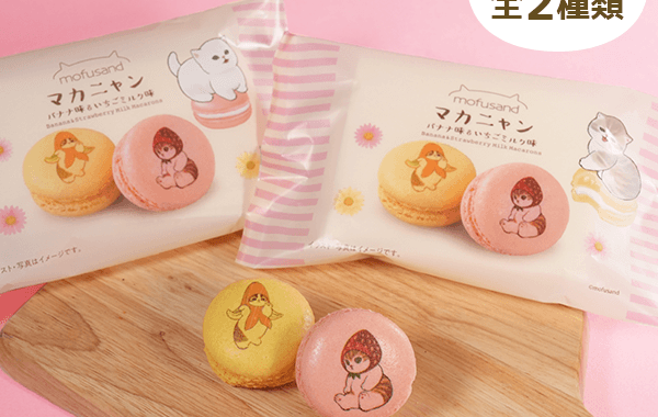 其中一款推出的商品是「Mofusand焦糖香草奶油三明」,這是一款貓臉形狀的蛋糕,上面塗滿了邪惡的鮮忌廉。這款大理石蛋糕使用了兩種焦糖麵團,並添加了大量香草鮮忌廉。